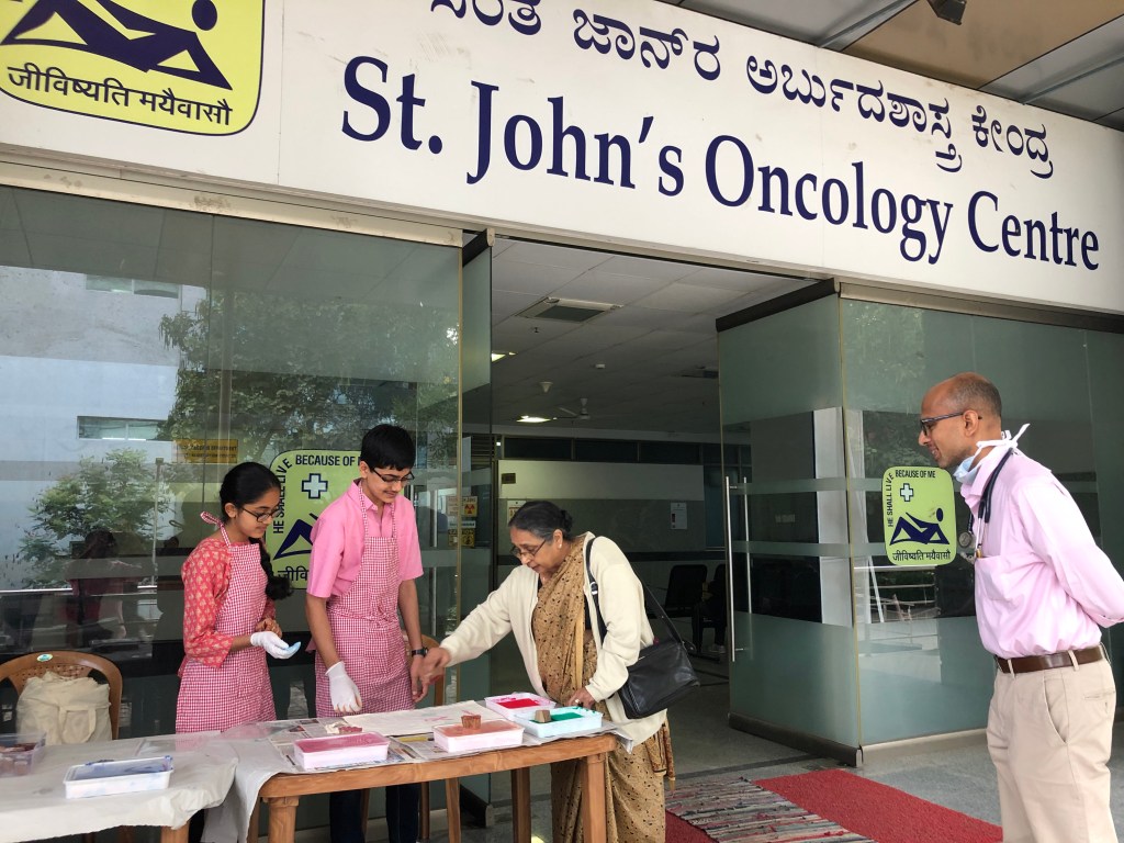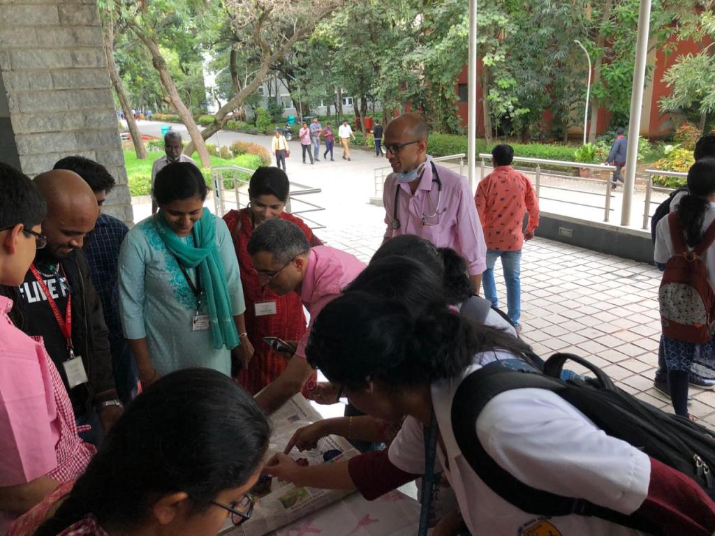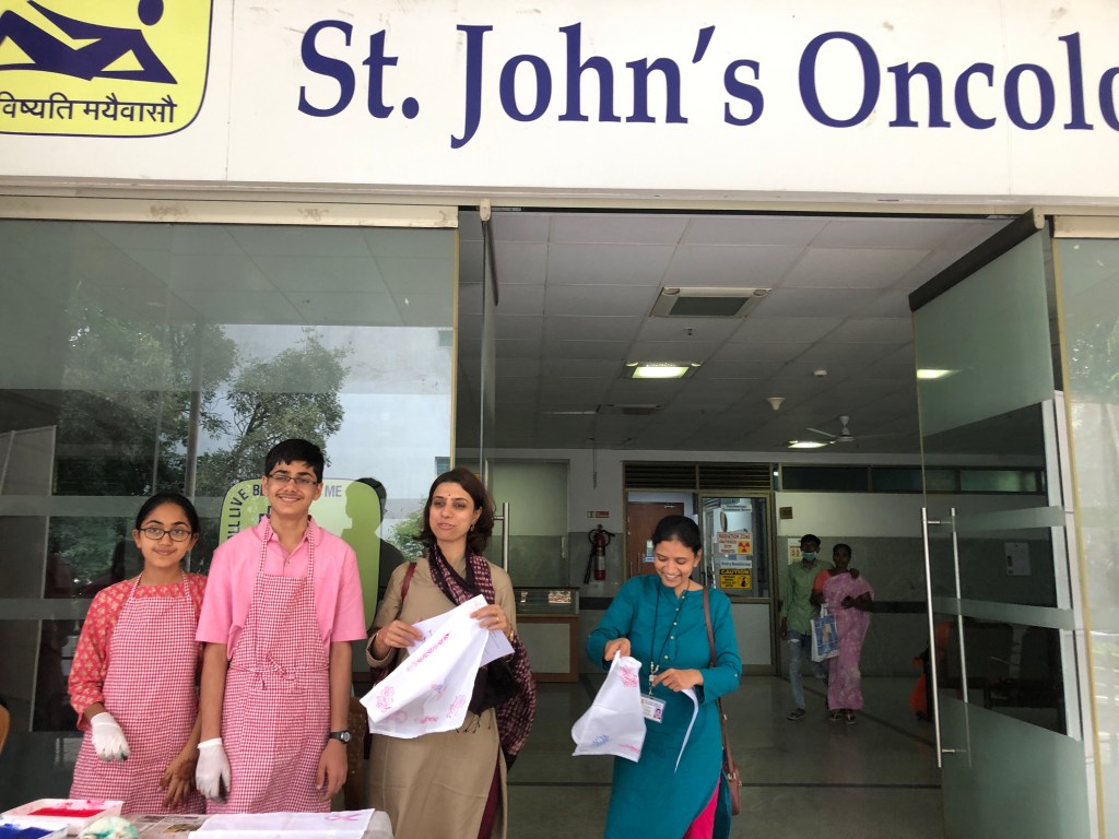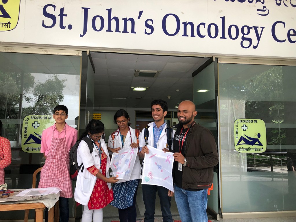We were honoured by the presence of the Associate Director of St. John’s Hospital, Rev. Father Pradeep Kumar Samad, who was gracious enough to come by to participate in the event and encourage me. We are deeply indebted to Dr. Rakesh S. Ramesh for his meticulous planning and continual support throughout the program. We were also fortunate that several leading doctors at the institute enthusiastically supported the activity. Additionally, we are thankful for the support of Ms. Mallika Devi and Ms. Lavanya from the Cancer Registry, who helped with the distribution of the brochures and leaflets.
