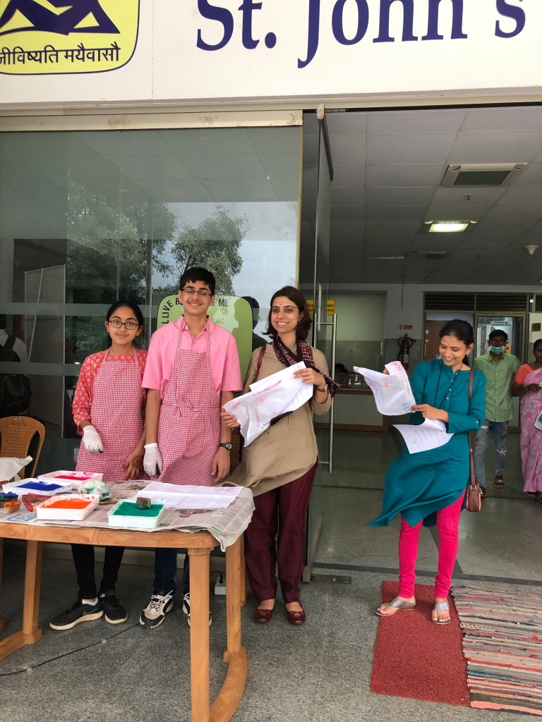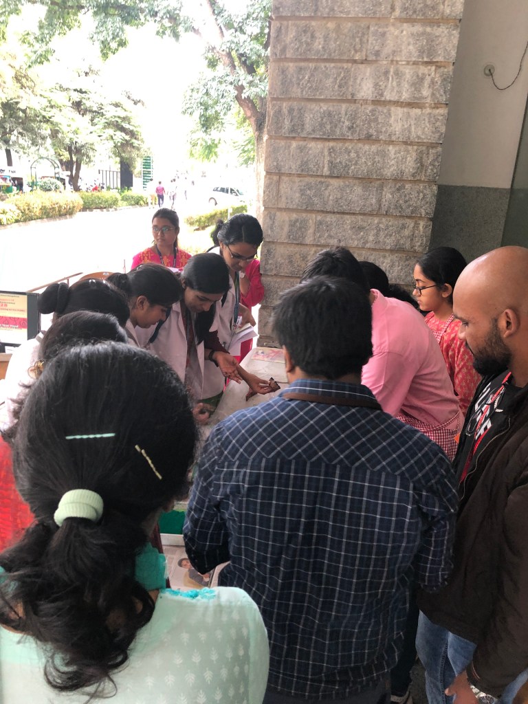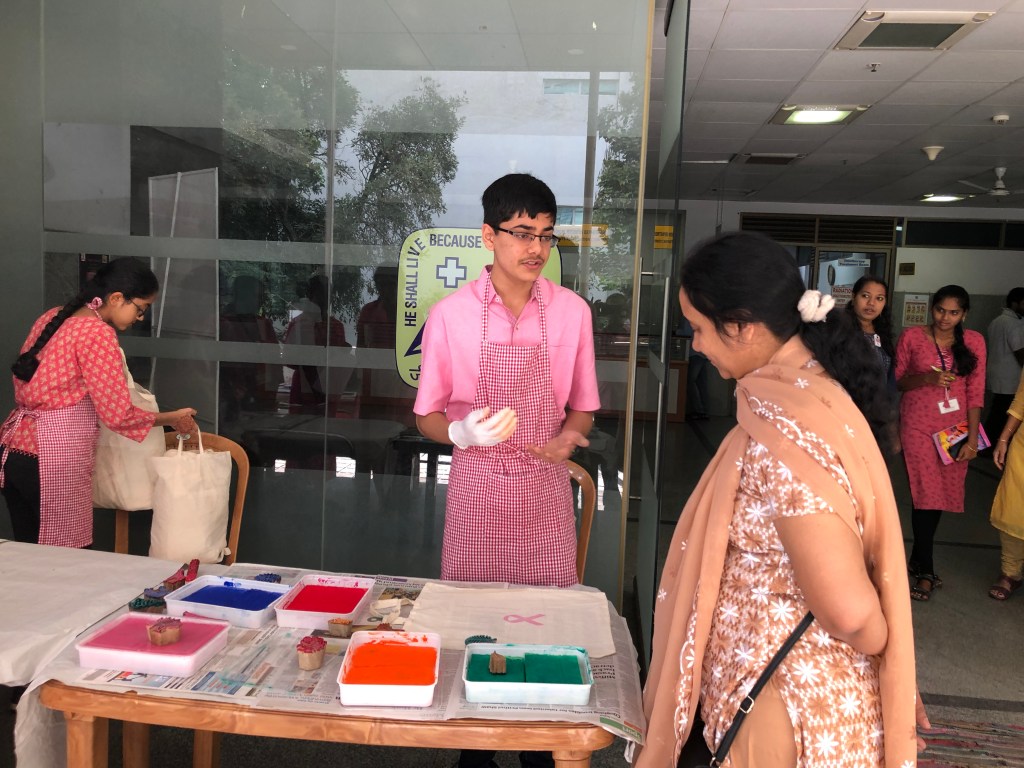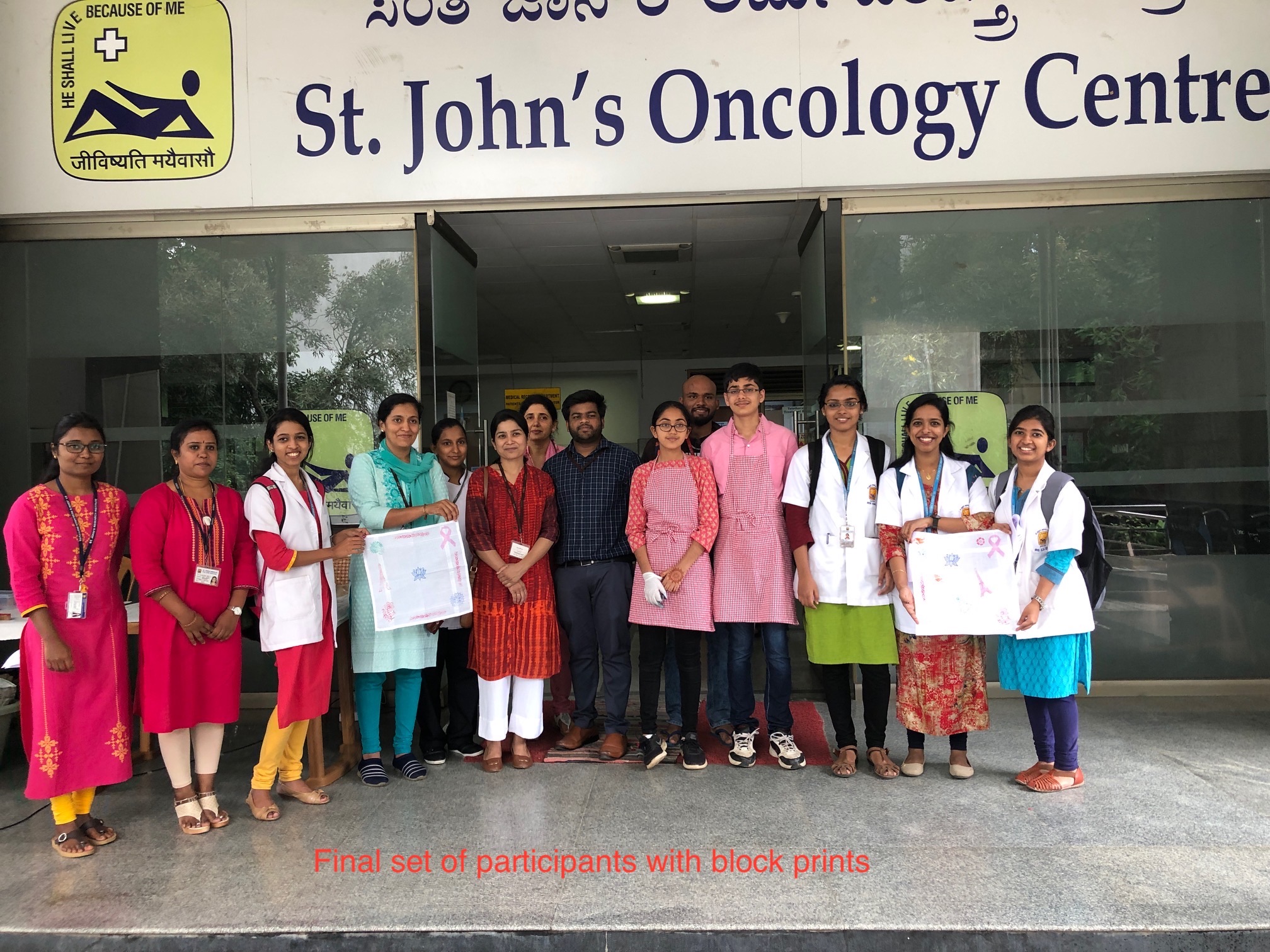 We were honoured by the presence of the Associate Director of St. John’s Hospital, Rev. Father Pradeep Kumar Samad, who was gracious enough to come by to participate in the event and encourage me. We are deeply indebted to Dr. Rakesh S. Ramesh for his meticulous planning and continual support throughout the program. We were also fortunate that several leading doctors at the institute enthusiastically supported the activity. Additionally, we are thankful for the support of Ms. Mallika Devi and Ms. Lavanya from the Cancer Registry, who helped with the distribution of the brochures and leaflets.