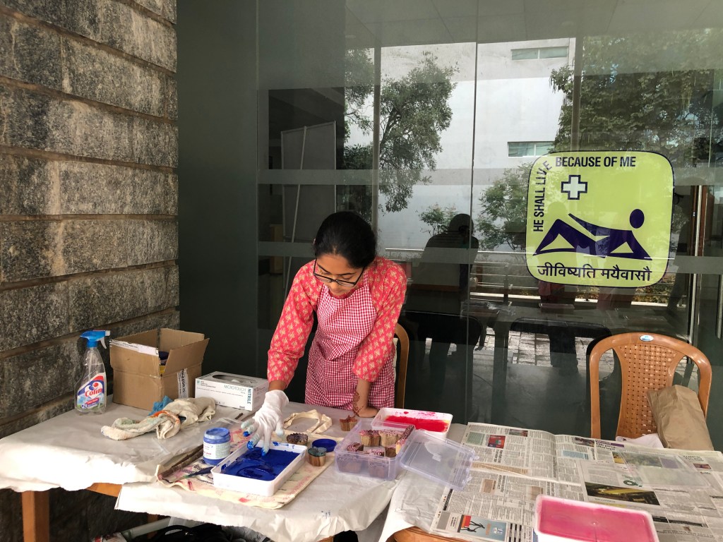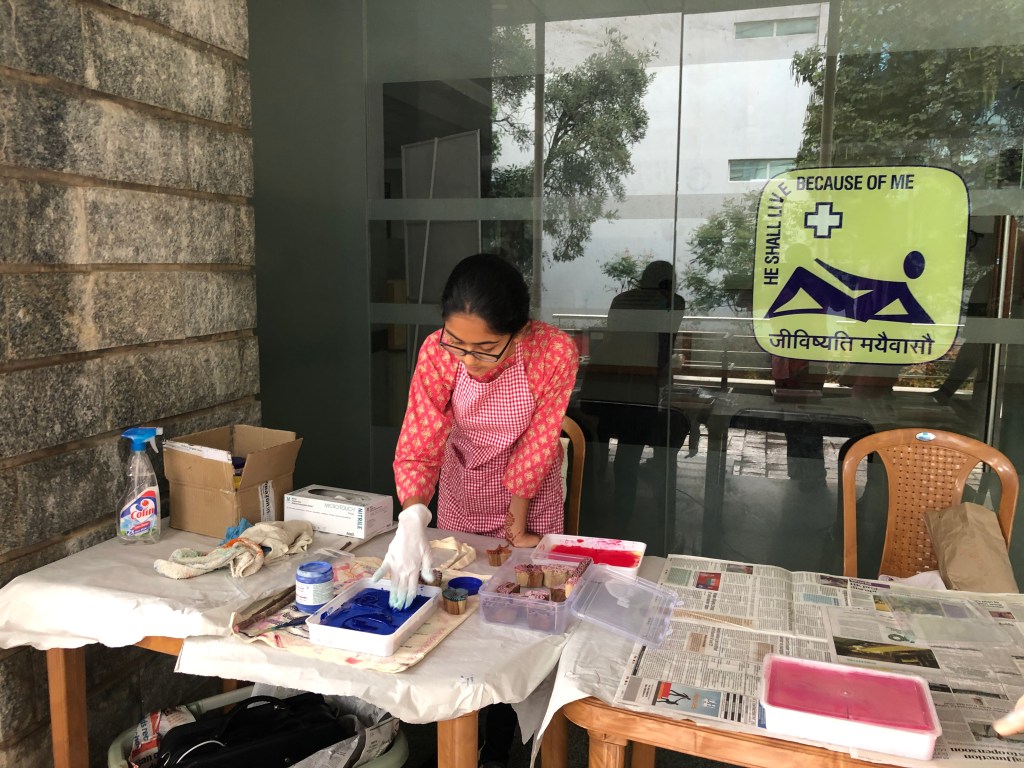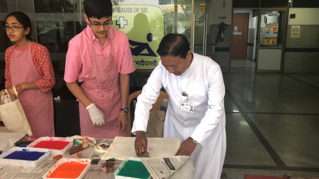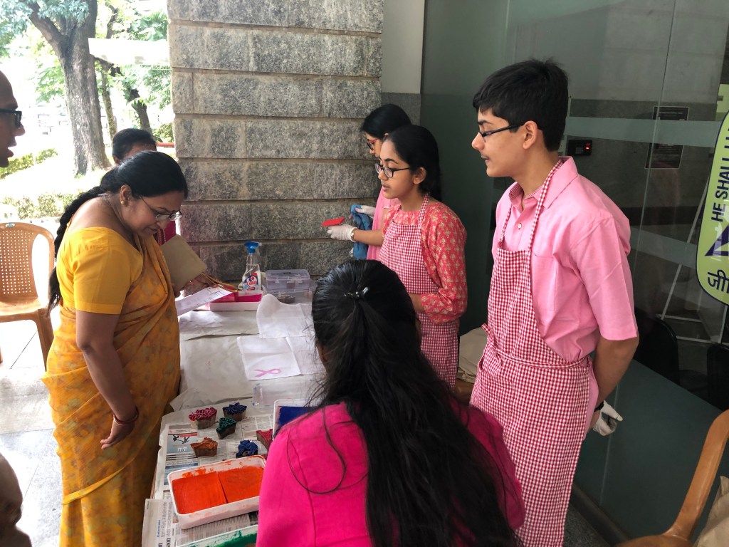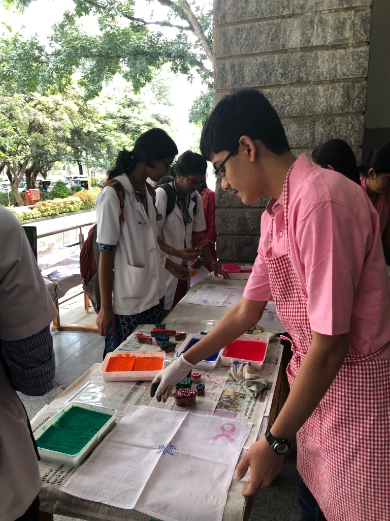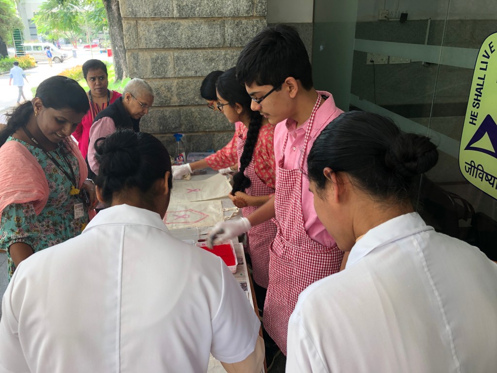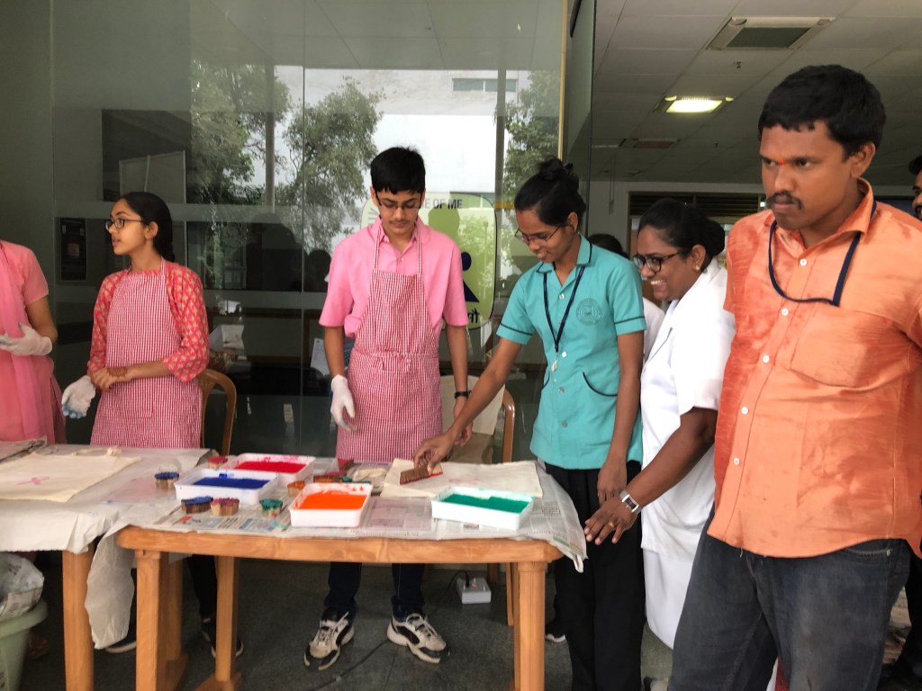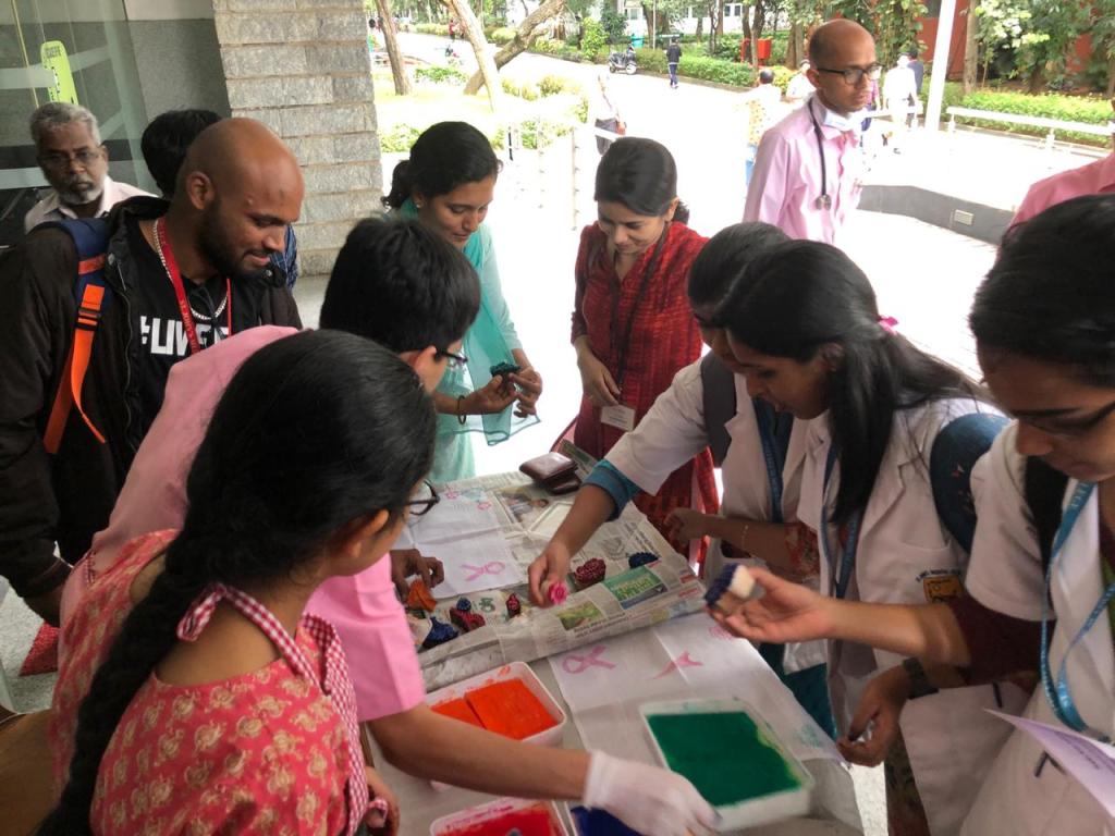 A quick oral briefing on cancer awareness was followed by a hands on art activity, requiring no prior skill or knowledge of art.