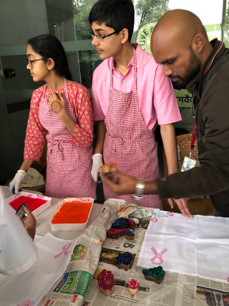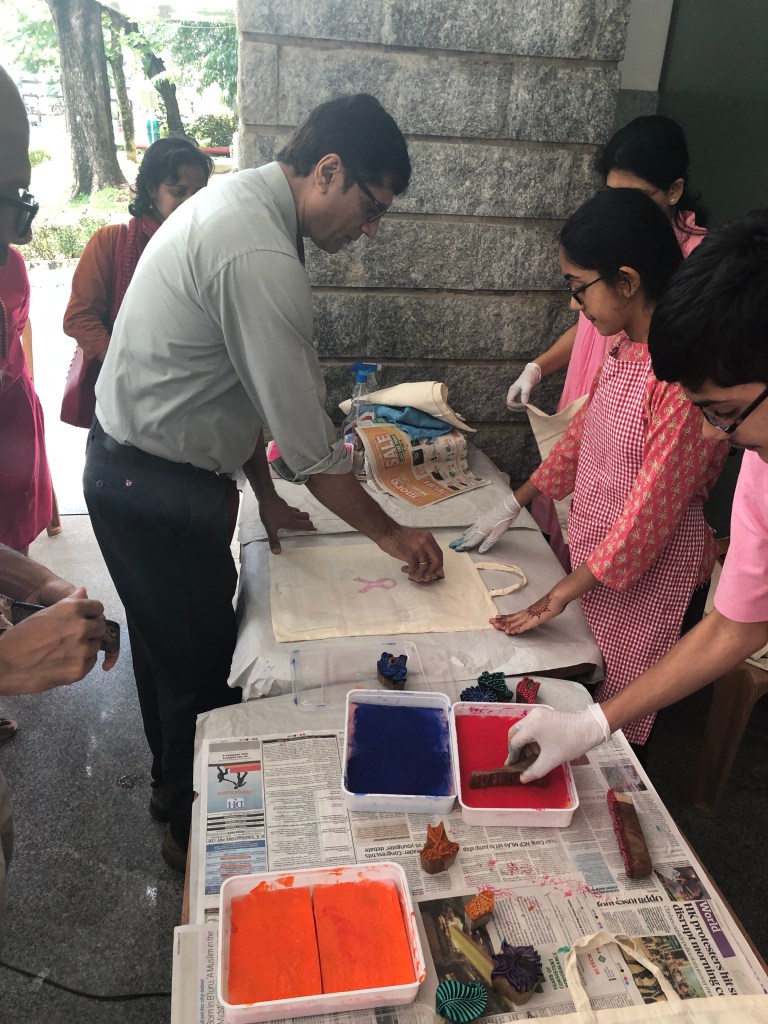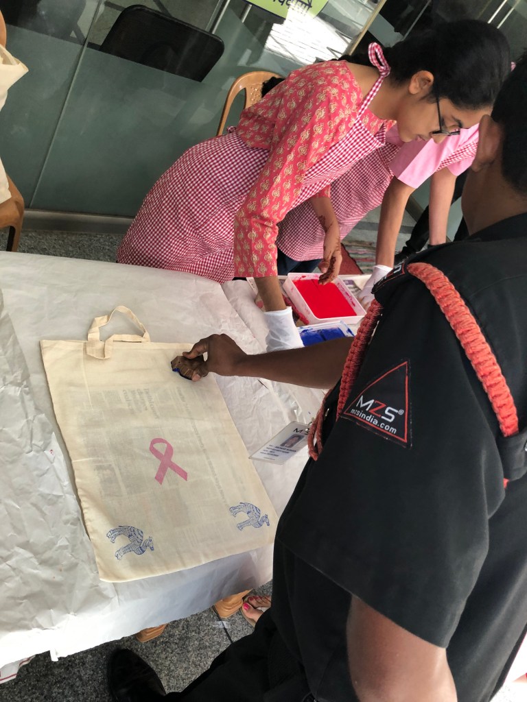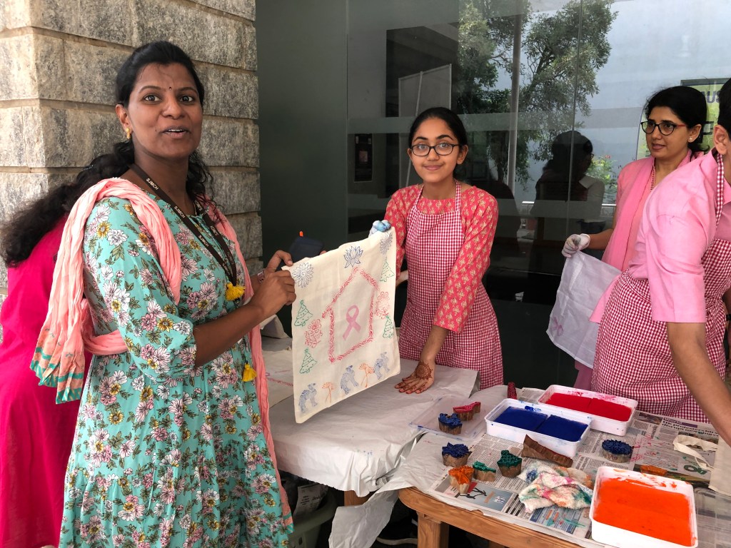 Each participant then made their own block print and took home the multi-lingual breast cancer awareness brochures tucked inside their personalized art tote.